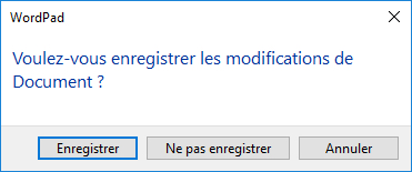 Une boite de dialogue est une fenêtre qui apparaît lorsque Windows ou un Logiciel a besoin de vous pour faire un choix. Par exemple quand vous quittez un document il vous est certainement arrivé d'avoir une boite de dialogue vous demandant "Voulez-vous enregistrer" ; "Oui"; "Non"; "Annuler".