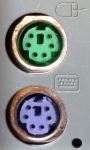 C'est la prise qui sert à brancher la souris et le clavier. Elle est ronde avec des broches et a deux couleurs : vert pour la souris et violet pour le clavier. Néanmoins elle est remplacée petit à petit par l'USB.