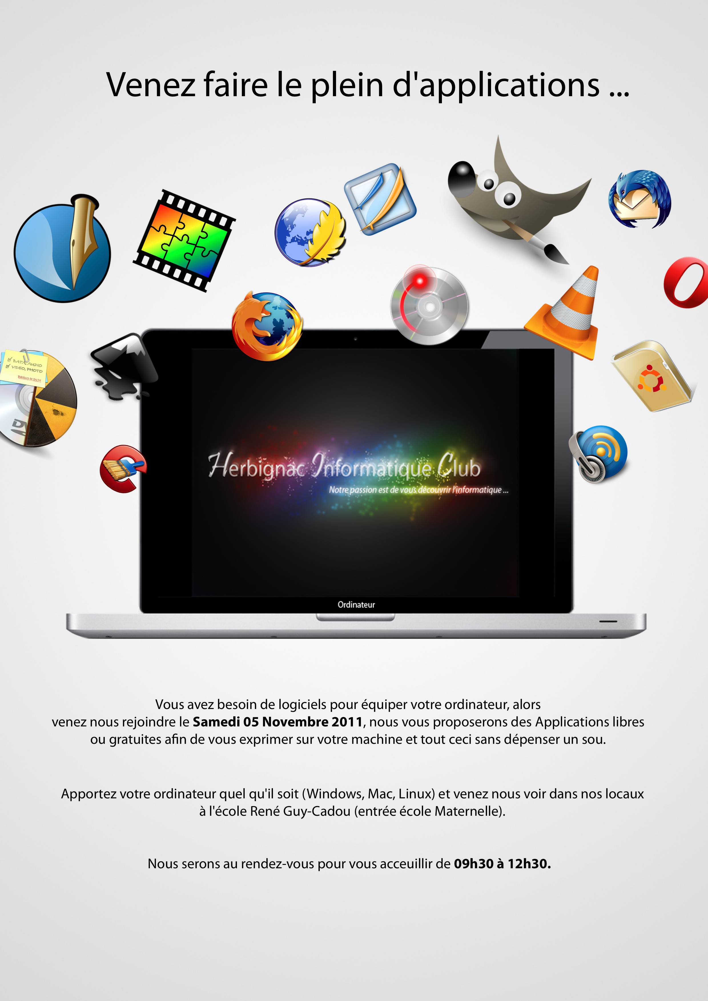 En ce Samedi 5 Novembre se déroulait la première Install Party de l’association où chacun a pu découvrir les logiciels libres ou gratuits pour remplacer les logiciels payants ou propriétaires. Le logiciel principal qui a été présenté était Libre Office (totalement gratuit) une suite bureautique qui peut remplacer le Pack Office de Microsoft qui vaut 129 € à l’achat. Libre Office est constitué d’un logiciel de traitement de texte, un tableur, un logiciel de présentation/diaporama, une base de données, un logiciel de dessin et, pour finir, un petit logiciel de mathématiques.